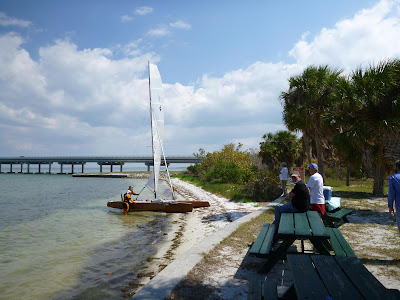 "Sandy Bottom and SOS arrived at the finish of the 2012 Ultimate Florida Challenge at 12:12 p.m. on Monday. The challenge began on Saturday, March 3 at Fort DeSoto Park near the entrance to Tampa Bay. They circled Florida (1,200 miles) in 23 days, 5 hours, and 12 minutes. (this is not the offiial time, just my estimate.)